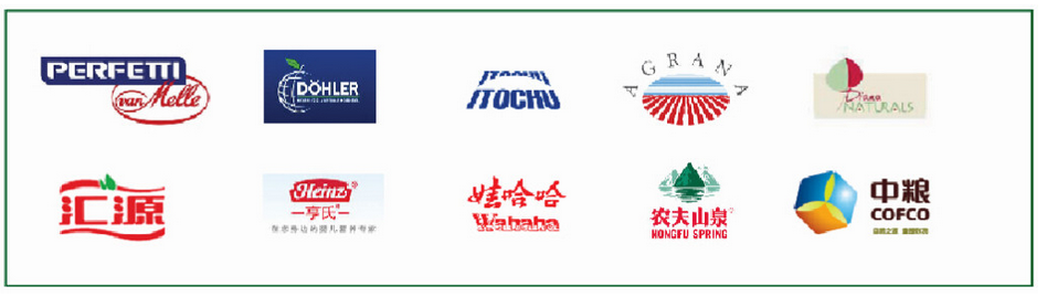 The company has become the high quality material supplier for the domestic and overseas famous companies such as ”HUI YUAN”, “TING HSIN”,“WAHAHA”, “NONGFU SPRING”, “COFCO”,“PERFETTI MELLE CANDY”,”AGRANA”,”ITOCHU” etc.